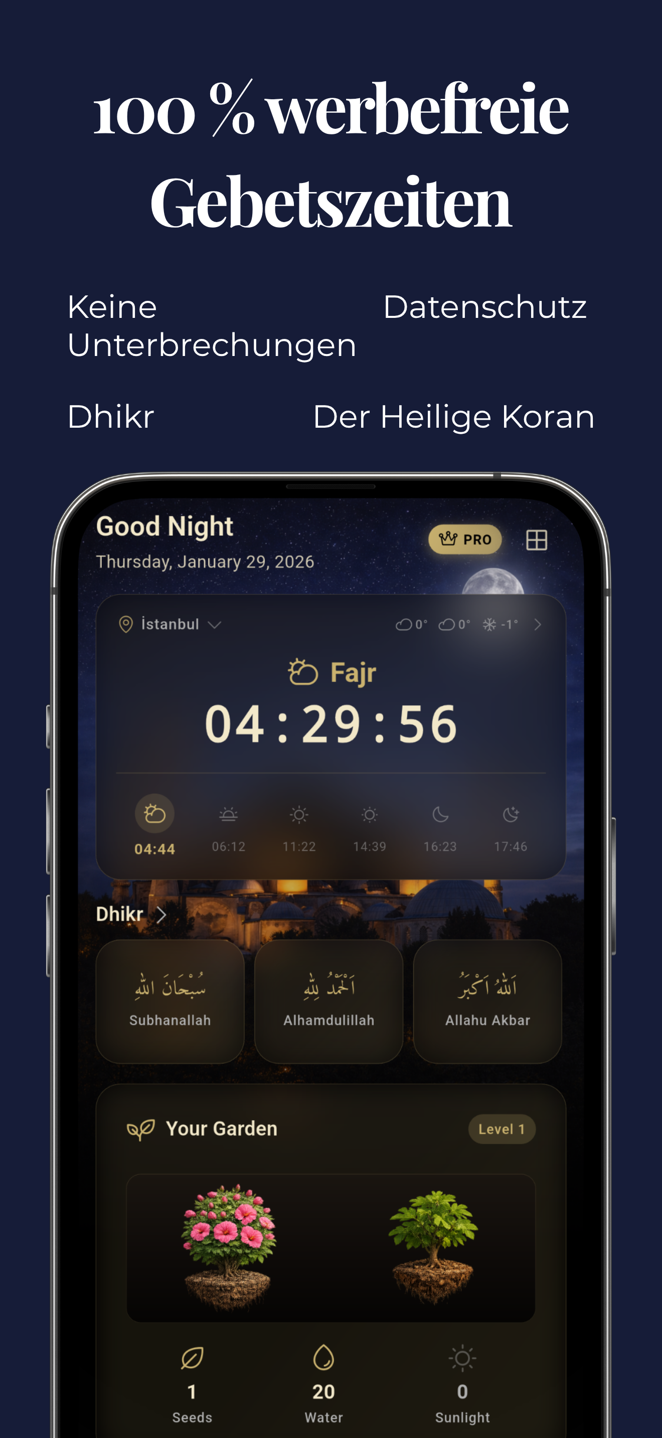Insch hilft Muslimen, ihre Verbindung zu Allah durch Dhikr und Gebet zu stärken – privat, werbefrei und werteorientiert.
