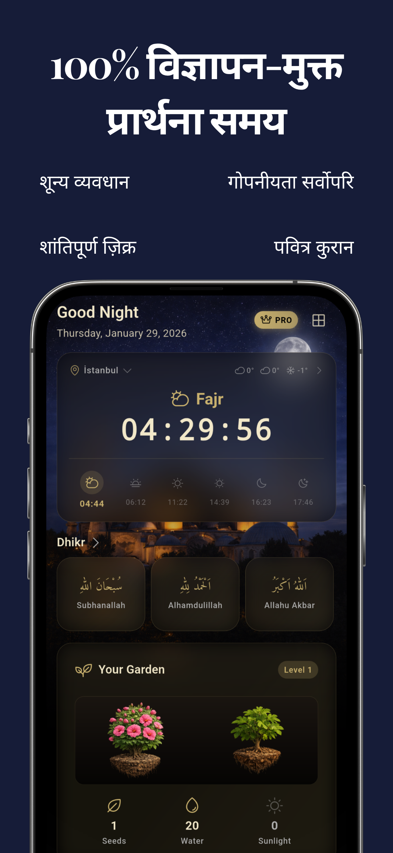 आपका इबादत डेटा सिर्फ आपके डिवाइस पर रहता है। हम इसे एक्सेस या शेयर नहीं करते। आपकी यात्रा आपके और अल्लाह के बीच है।