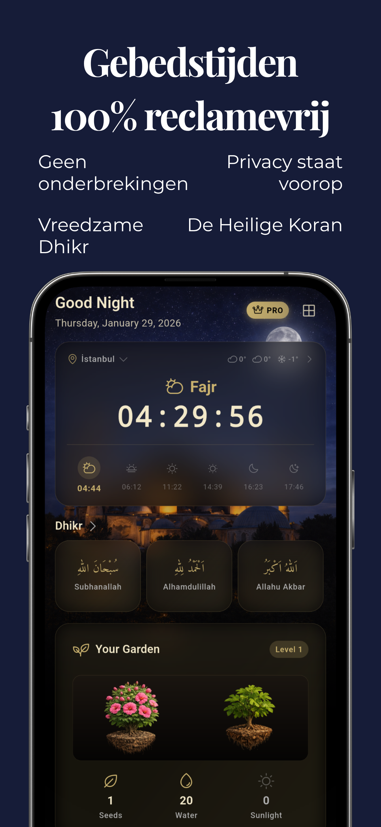 En er wacht nog veel meer op je... Van dagelijkse verzen en hadiths tot het bijhouden van gemiste gebeden (qada) en meertalige ondersteuning. We voegen voortdurend functies toe om je te helpen je spirituele staat stap voor stap te verbeteren.