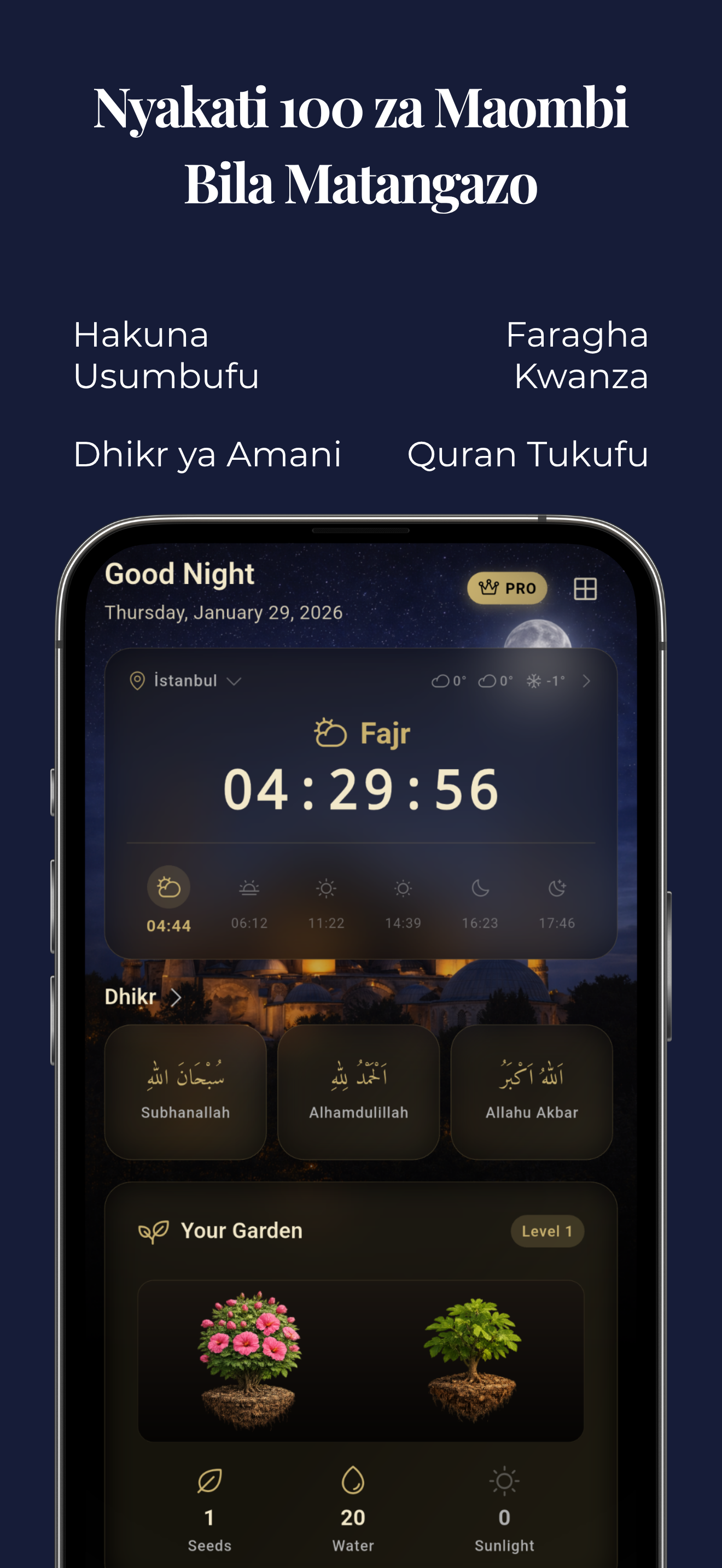 Na kuna mengi zaidi yanakusubiri... Kuanzia aya na hadithi za kila siku hadi ufuatiliaji wa swala za Qada na msaada wa lugha nyingi, tunaendelea kuongeza vipengele vya kukusaidia kuboresha hali yako ya kiroho hatua kwa hatua.